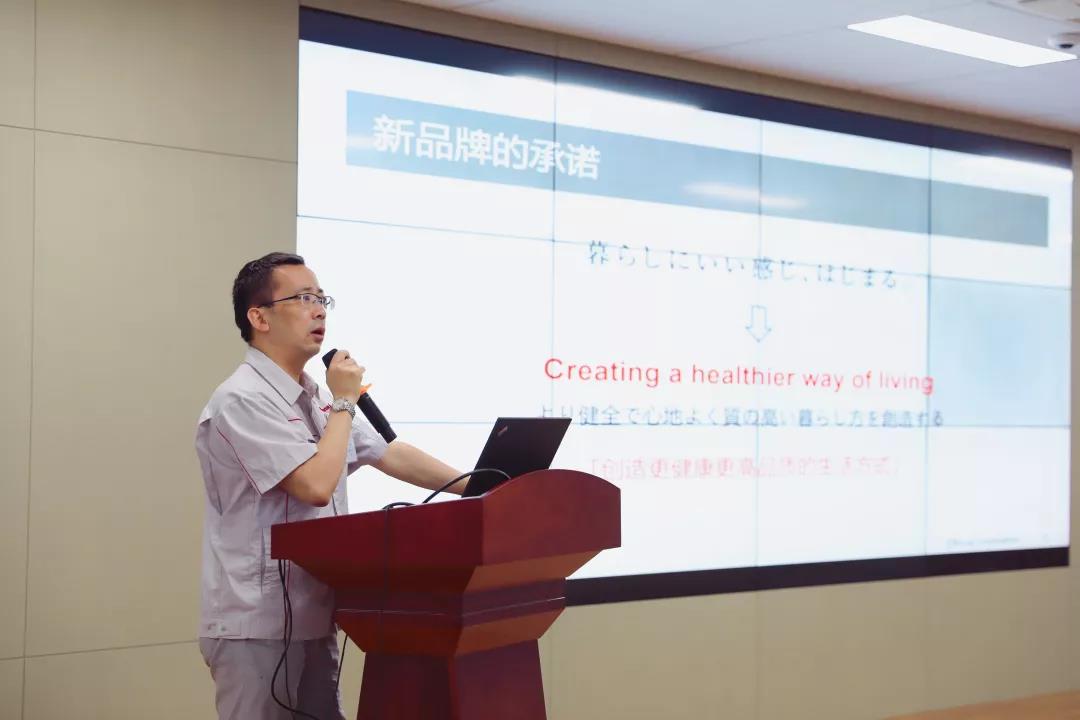 首先,上海林內(nèi)營業(yè)本部營銷與商品企劃部部長俞偉向大家分享了這次林內(nèi)集團推出新VI的背景,公司logo的具體變化及重要意義,并向大家詮釋了林內(nèi)新的品牌承諾——創(chuàng)造更健康的生活方式(Creating a healthier way of living)。
