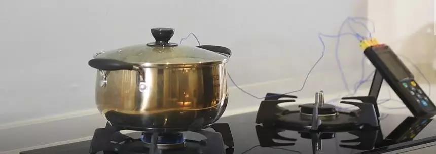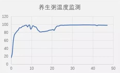 同樣的,我們監(jiān)測鍋內溫度,看林內御廚美食灶RB-2QLGV如何熬制一鍋美味粥。