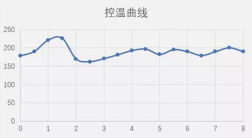 通過溫度監(jiān)測可以看出,在穩(wěn)定后,油溫可以保持在180℃附近波動。