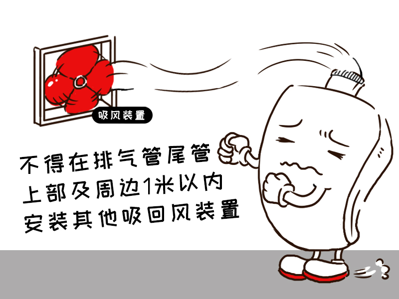 林內(nèi)采暖爐的排氣管已經(jīng)按照國(guó)標(biāo)、廠標(biāo)去安裝;排氣管尾管已經(jīng)安裝到室外,所以大家不要擅自再給排氣管尾管上部及周邊1米以內(nèi)安裝其他吸回風(fēng)裝置。