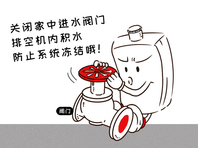 如果要短時(shí)間出門,請(qǐng)將每個(gè)房間的采暖回路閥門全部打開,確保供暖管路的通暢。為避免器具或管路凍壞,在冬季長(zhǎng)期停機(jī)時(shí),應(yīng)將器具采暖和生活熱水系統(tǒng)內(nèi)的水及采暖管道內(nèi)的水全部排空,關(guān)閉采暖爐燃?xì)忾y,拔掉電源插頭。