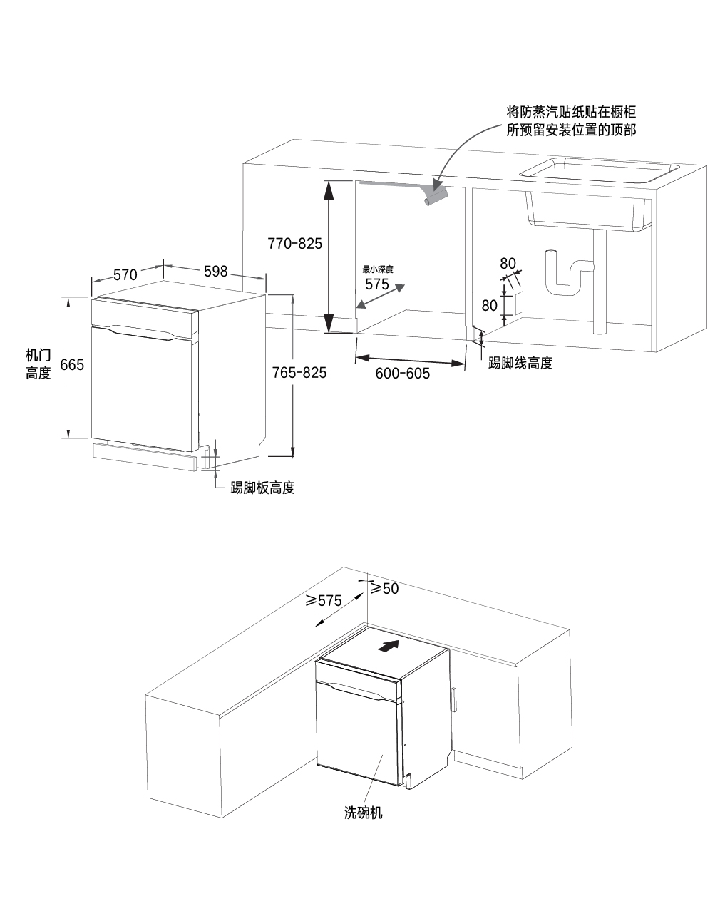 外形尺寸(mm) : (W)598×(D)570×(H)(765-825)