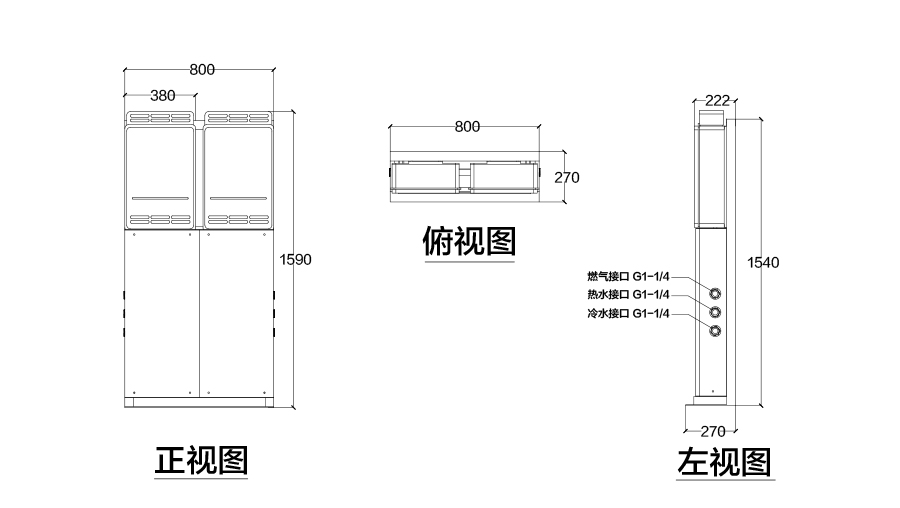 外形尺寸(mm) : (W)800 × (H)1540 × (D) 270