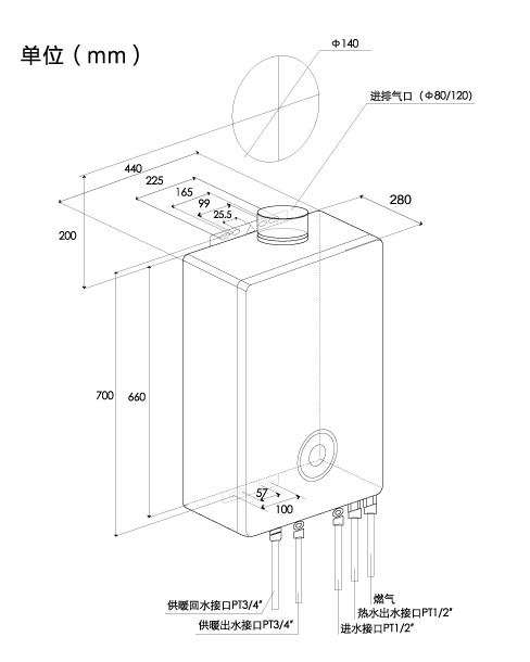 給排氣管直徑(mm) : φ120/φ80