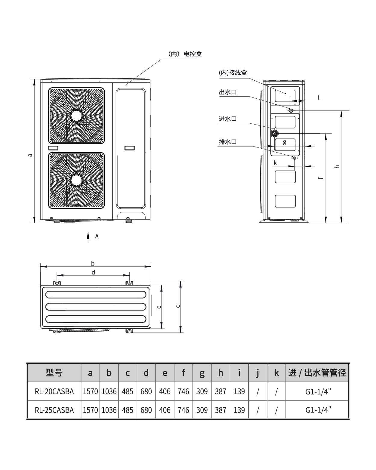 機組尺寸(mm) : (W)1036×(D)406×(H)1570